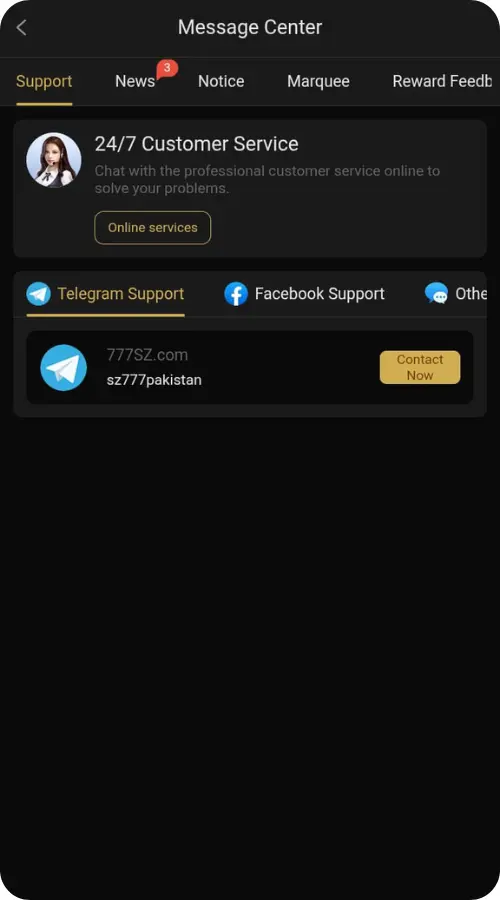 Some versions of SZ777 Game offer a live chat feature inside the app. You can access it through the Contact Us section for instant assistance with your problem.
