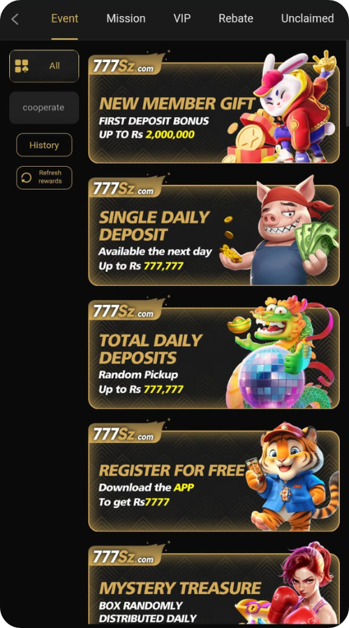 The Welcome Bonus is given to new users when they register for the first time in SZ777 Game.
