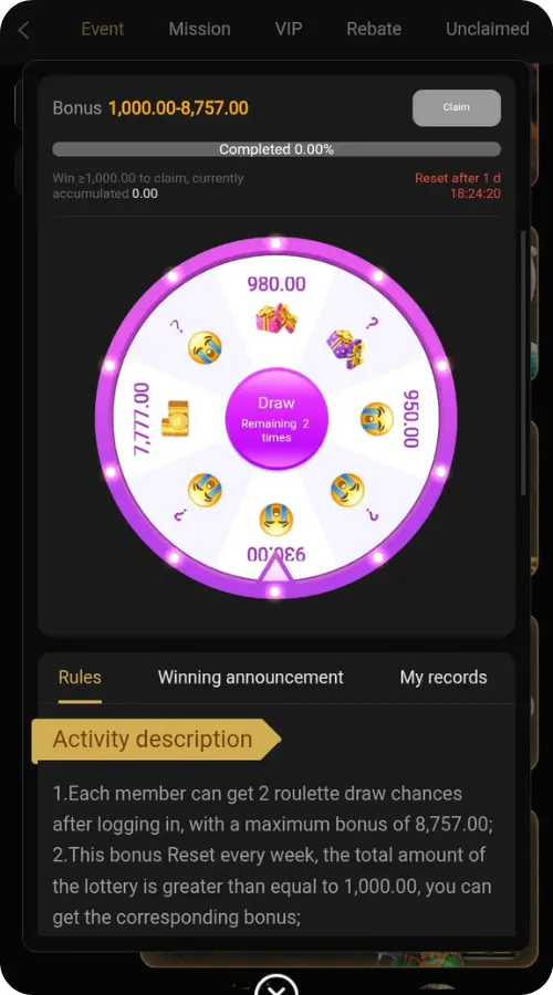 - Roulette: Spin and earn big prizes